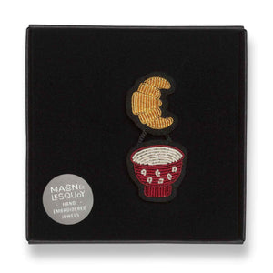 Die Broschen von Macon&Lesquoy werden mit Sorgfalt entworfen und bestickt. Ob am Pullover oder an der Jeansjacke – diese Broschen muss man genauer anschauen und darüber sprechen.