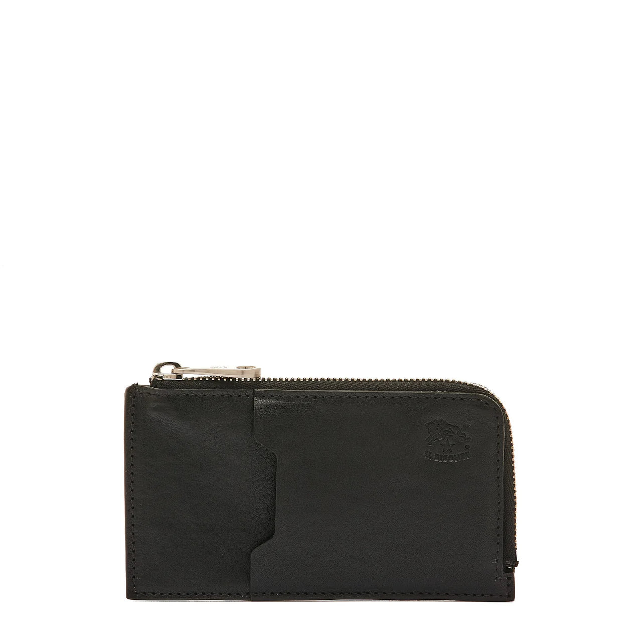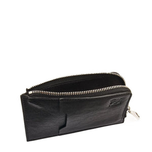 Das Kartenetui in schlichtem Design, unterstreicht die Natürlichkeit und Schönheit von pflanzlich gegerbtem Leder. Fünf Aussenfächer für Karten mit ikonischem geometrischem Umriss. Innenfutter aus Baumwollcanvas mit Fach für Geldscheine und ein Münzfach mit Reissverschluss.