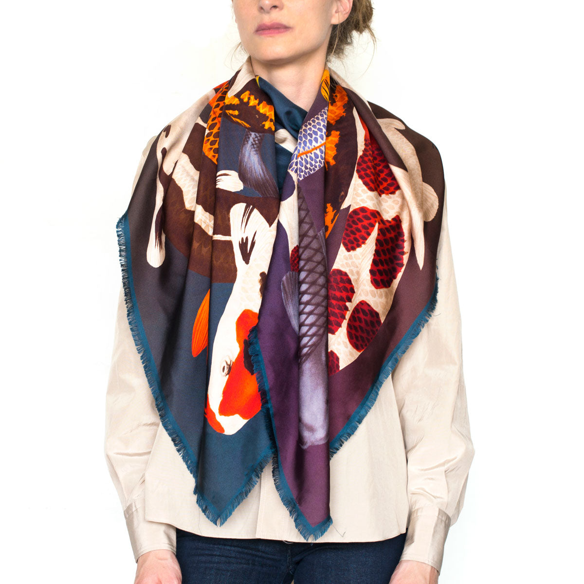Ein farbenfrohes Foulard mit neun verschiedenen Koi-Arten.