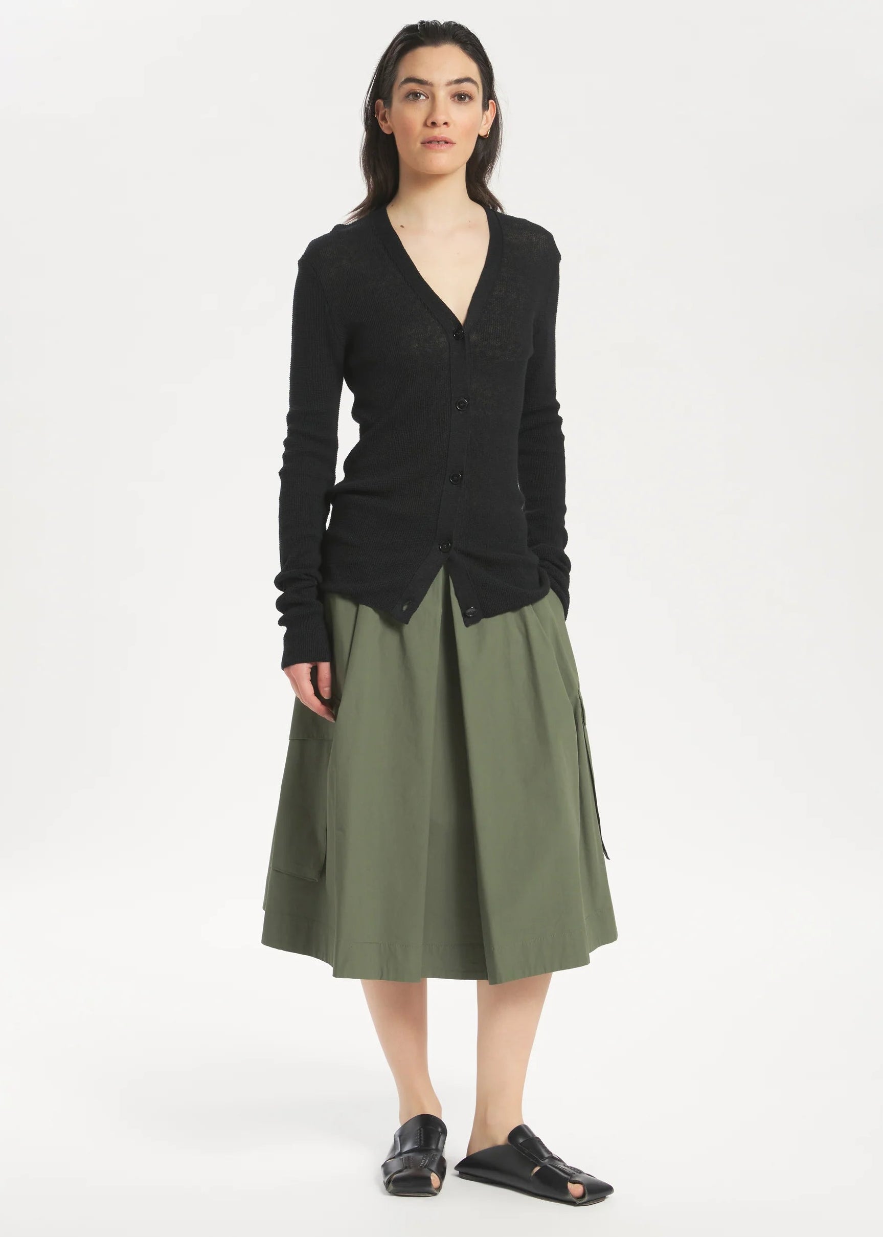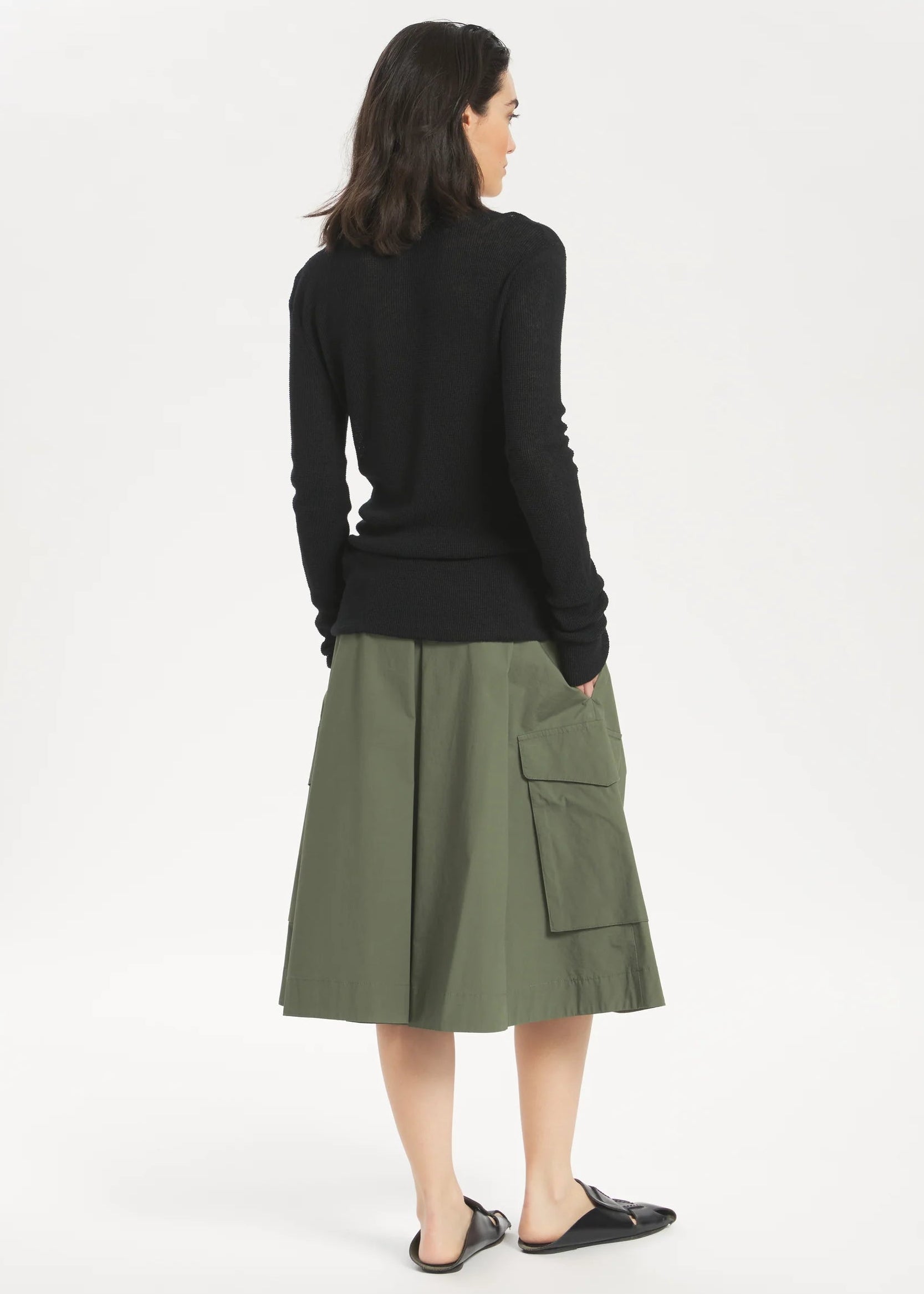 Dieser Rock in A-Linie mit Falten, Seiten- und Cargotaschen ist aus elastischem Poppeline gefertigt und sorgt für einen bequemen, modernen Look.
