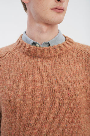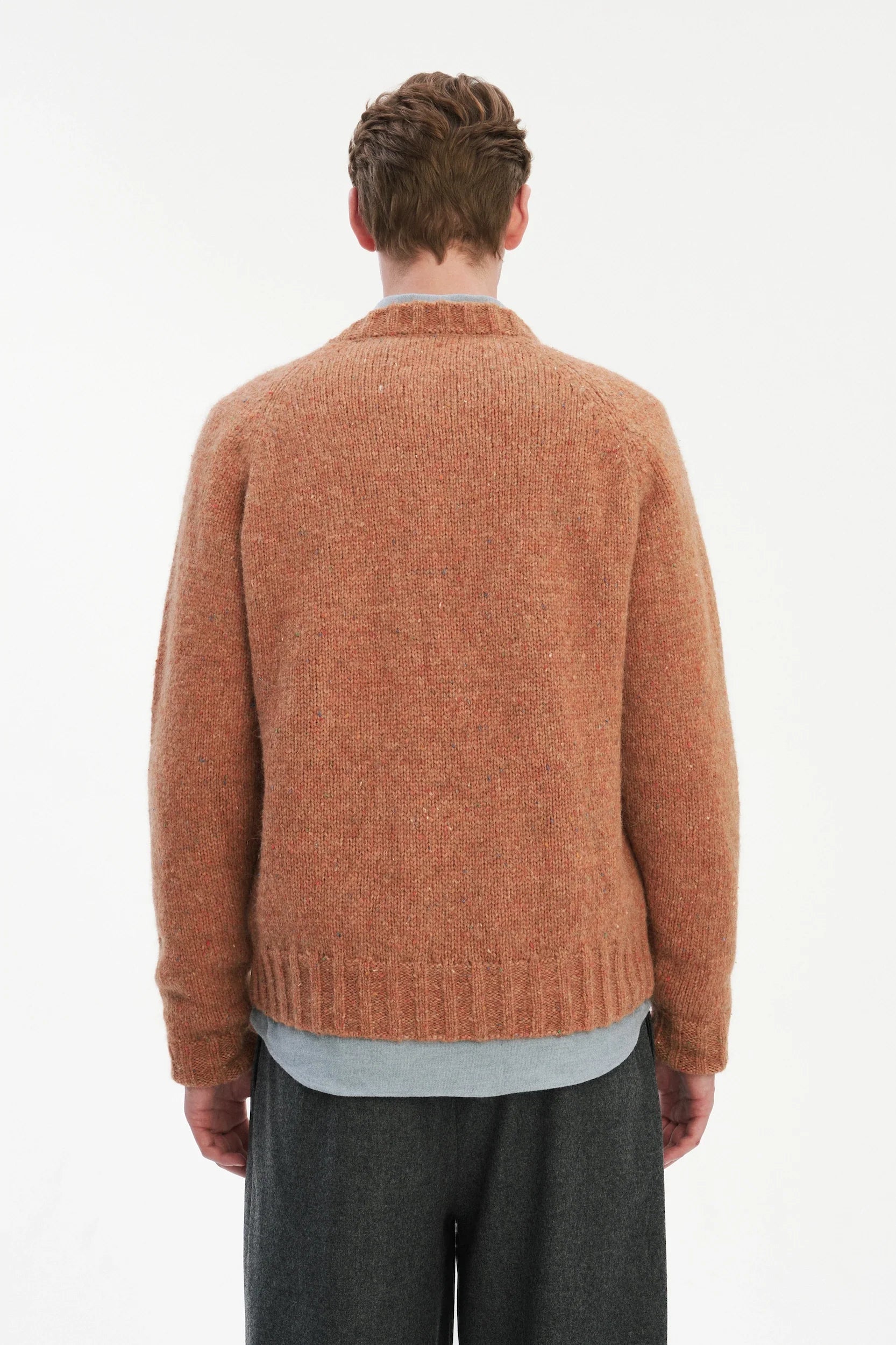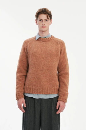 Ein klassischer Raglan-Pullover mit normaler Passform, mit geripptem Saum und Ausschnitt. Das Garn besteht aus einer weichen und nachhaltigen Mischung aus extrafeiner Alpakawolle, Wolle, Seide und recycelten Garnen.