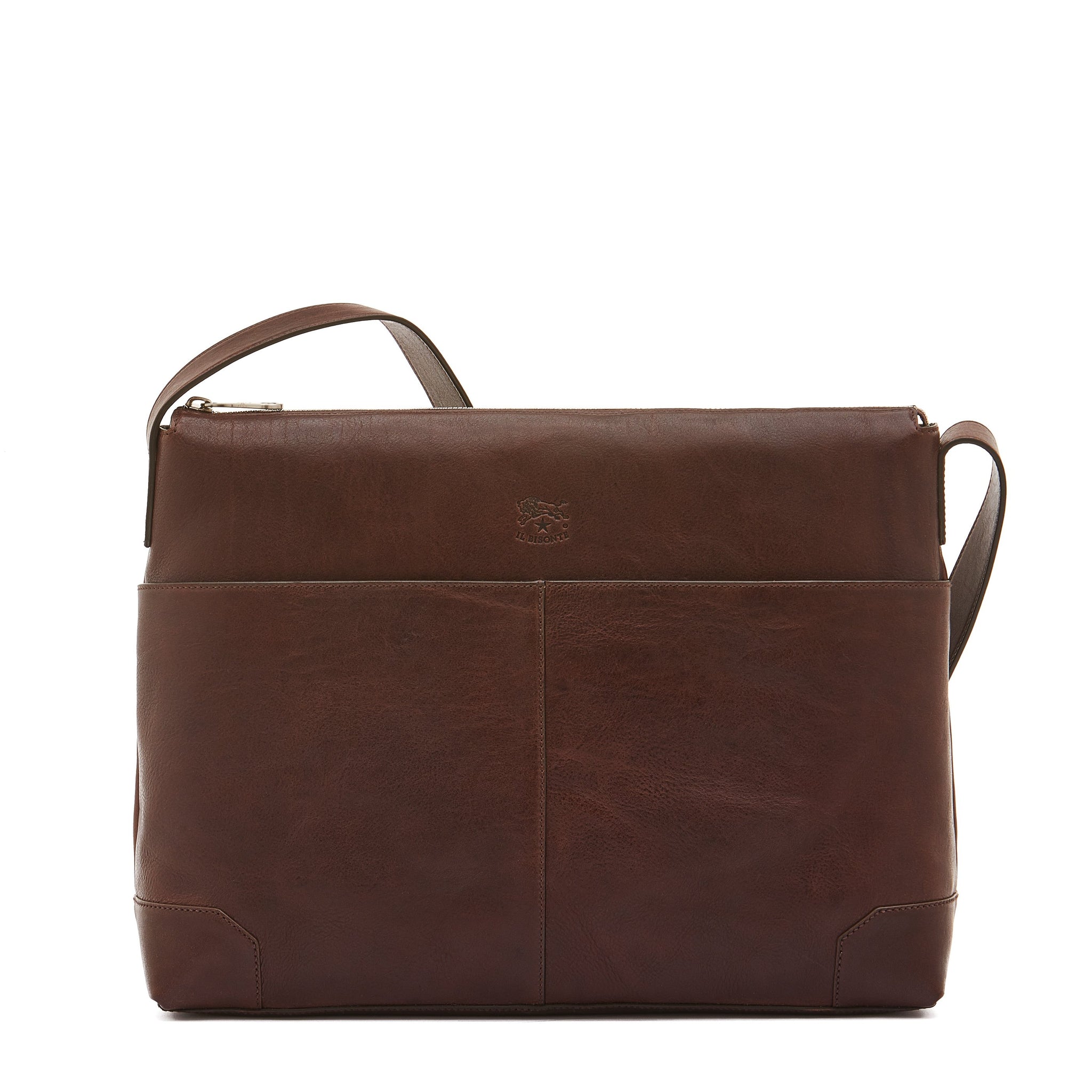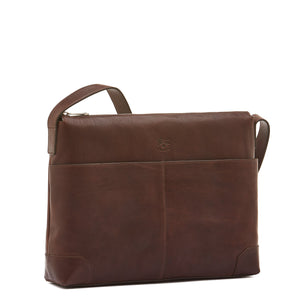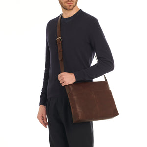 Die klassische Umhängetasche aus pflanzlich gegerbtem Leder für Herren wird als Crossbody getragen.
