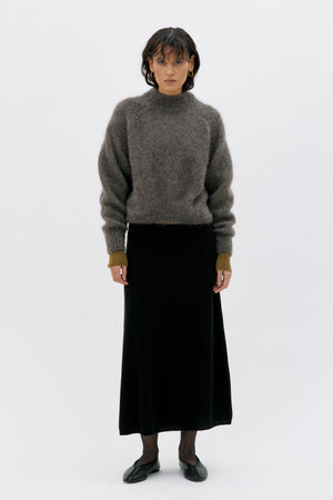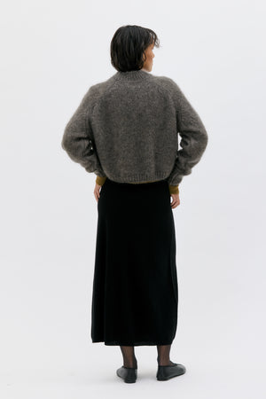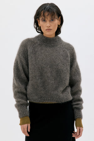 Der Pulli hat tiefer gelegte Schultern und gerippte Bündchen und Saum. Durch die Mischung von Mohair und Seide entsteht ein edles, haltbares, warmes und extrem weiches und leichtes Garn. Das Garn wird in einer zertifizierten Fabrikation in Italien hergestellt.