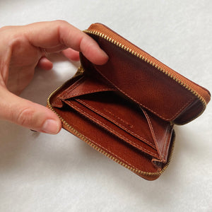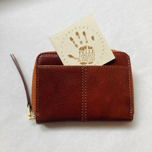 Dieses kompakte Portemonnaie ist aus hochwertigem Rindsleder gefertigt und wird von Hand hergestellt. Das Leder ist zu 100 % pflanzlich gegerbt.